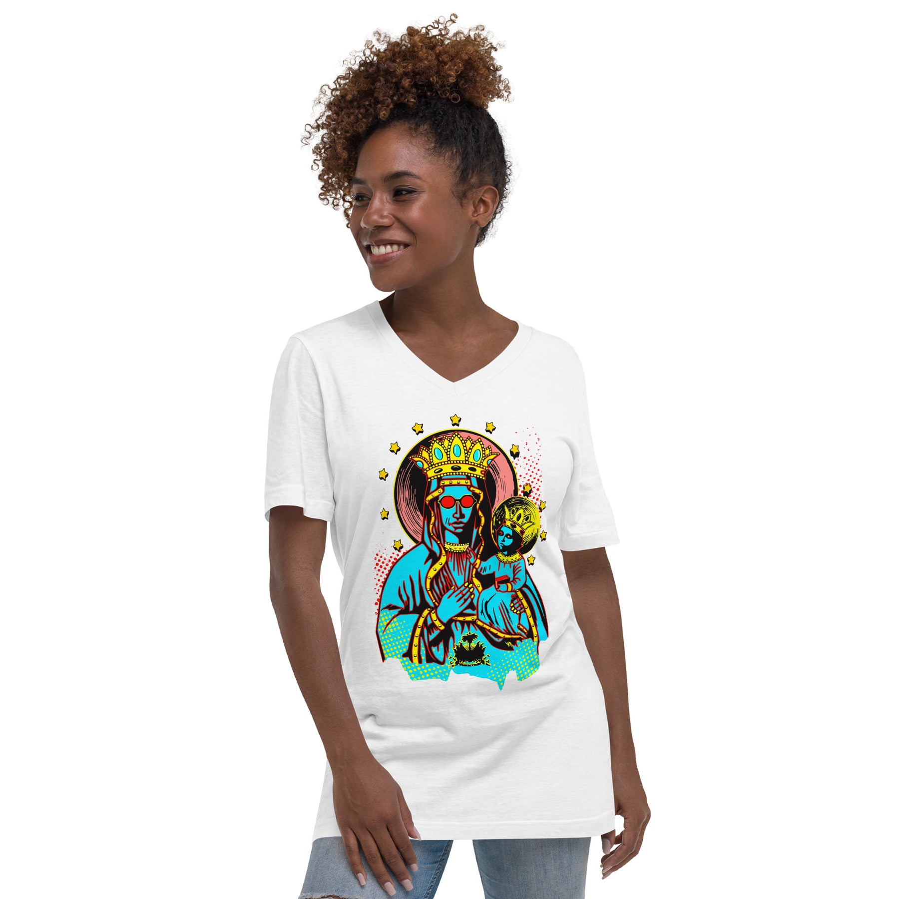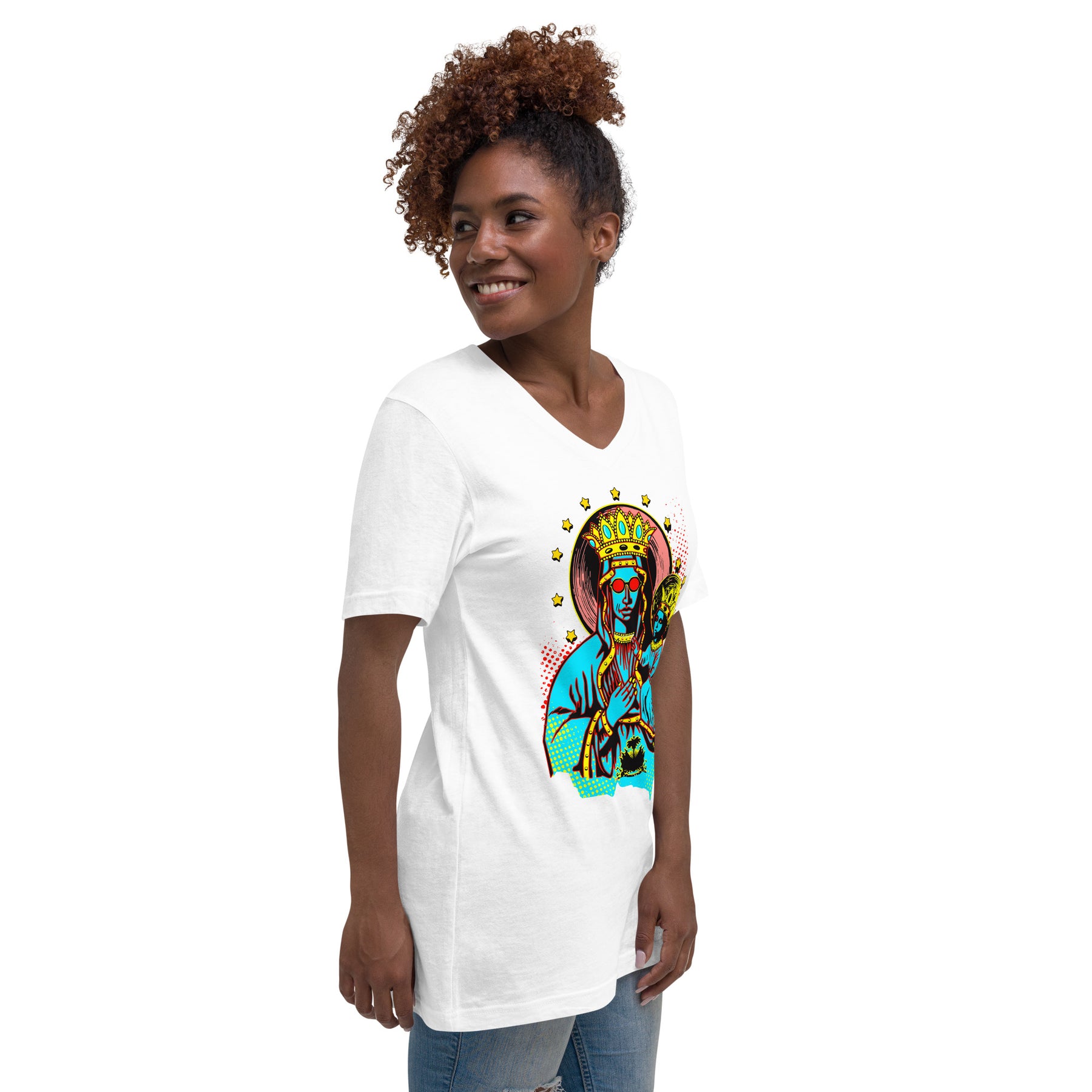 • Coverstitched v-neck and hemmed sleeves