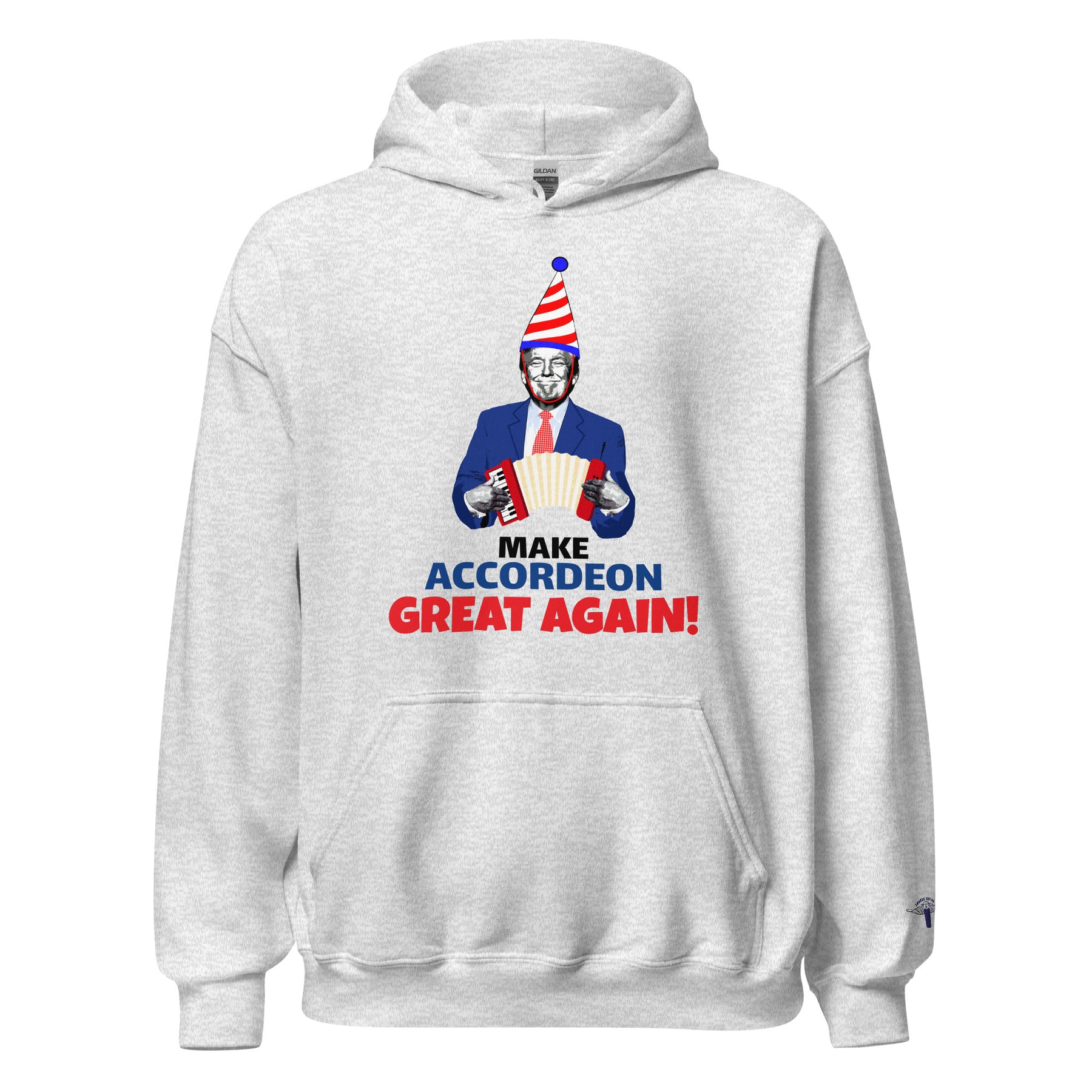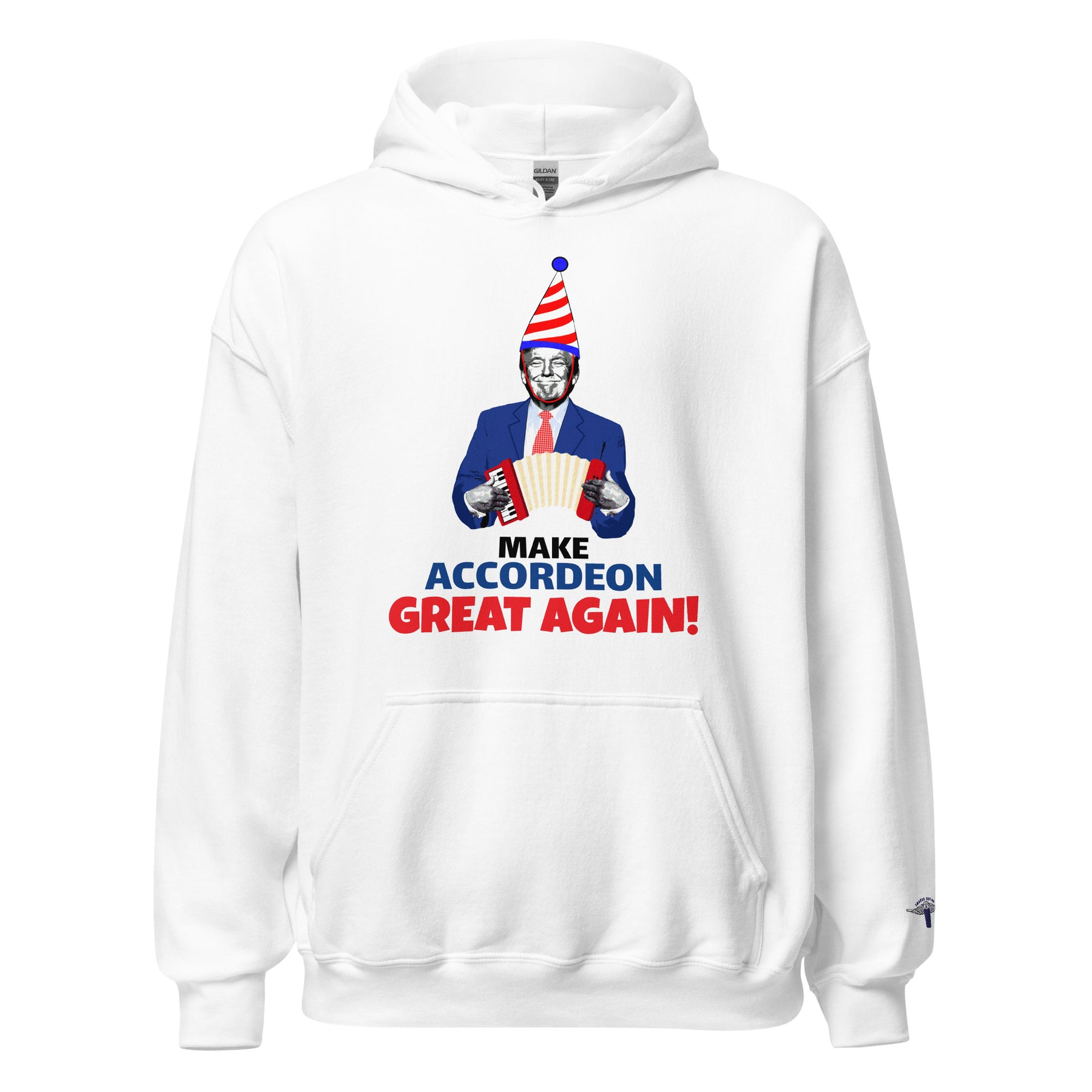 Making Accordion Great Again is a strong political statement in disguise, showing Donald Trump playing accordion with a kids party hat.